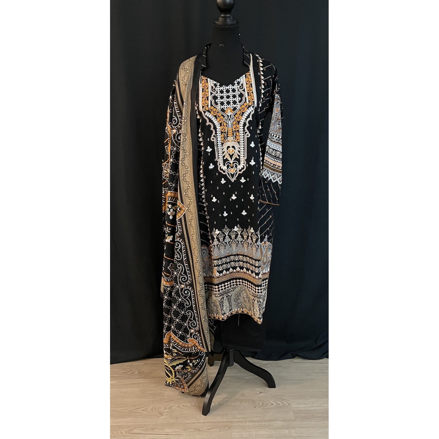 Tags: 3pcs, Lawn, Embroidered, Neckline, Printed, Salwar Kameez, SIZE 40, Black, White, Gold, Orange, BC112A