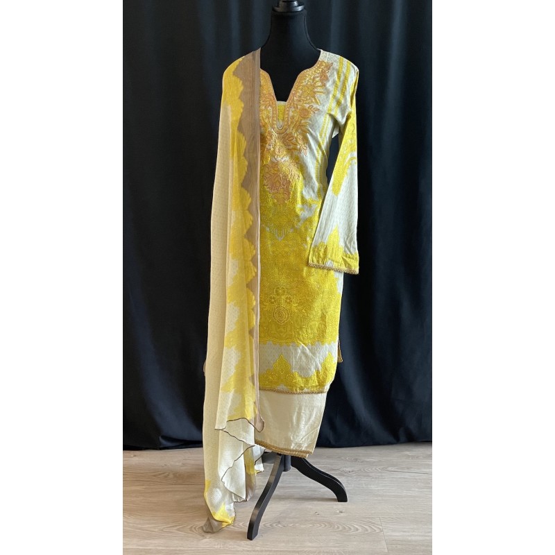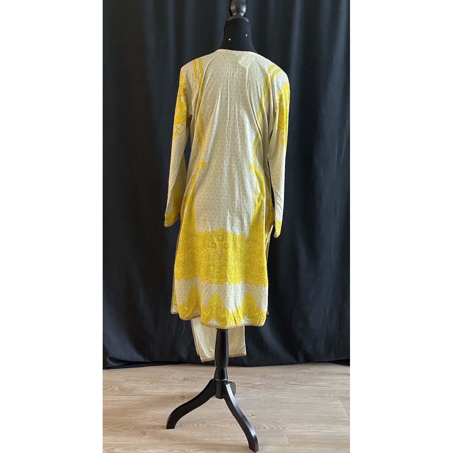 Tags: 3pcs, Lawn, Embroidered, Neckline, Printed, Yellow, White, Gold, Cream, Salwar Kameez, SIZE 40, BC155A