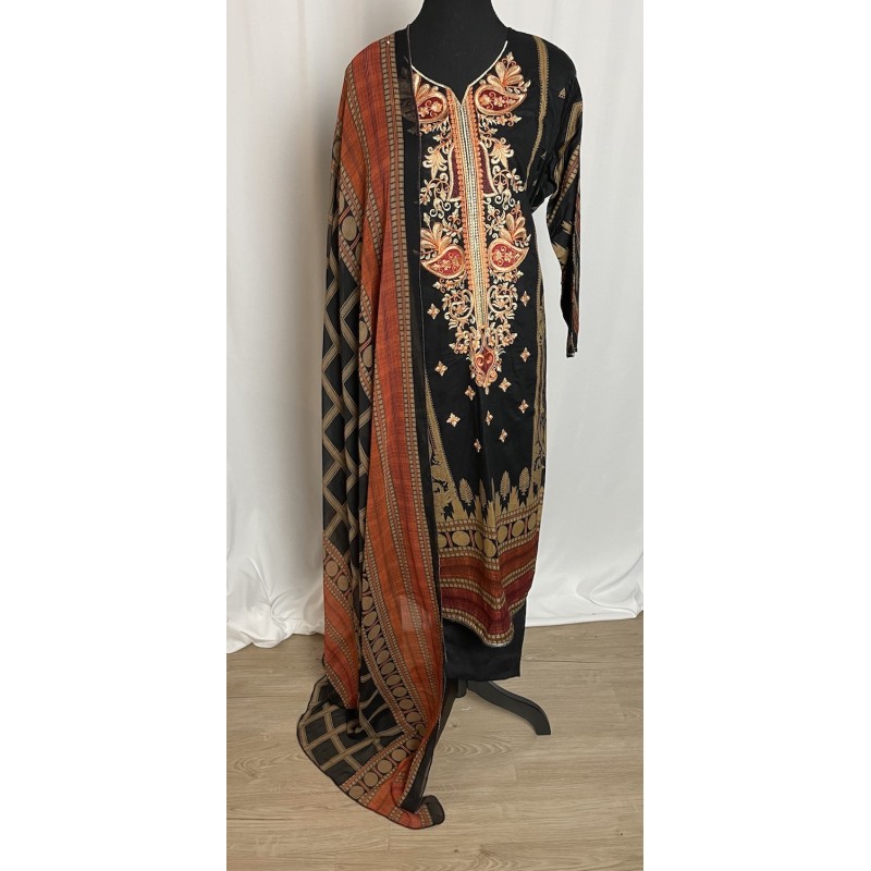 Tags: 3pcs, Embroidered, Neckline, Black, Gold, Orange, Salwar Kameez, SIZE 44, BC105A