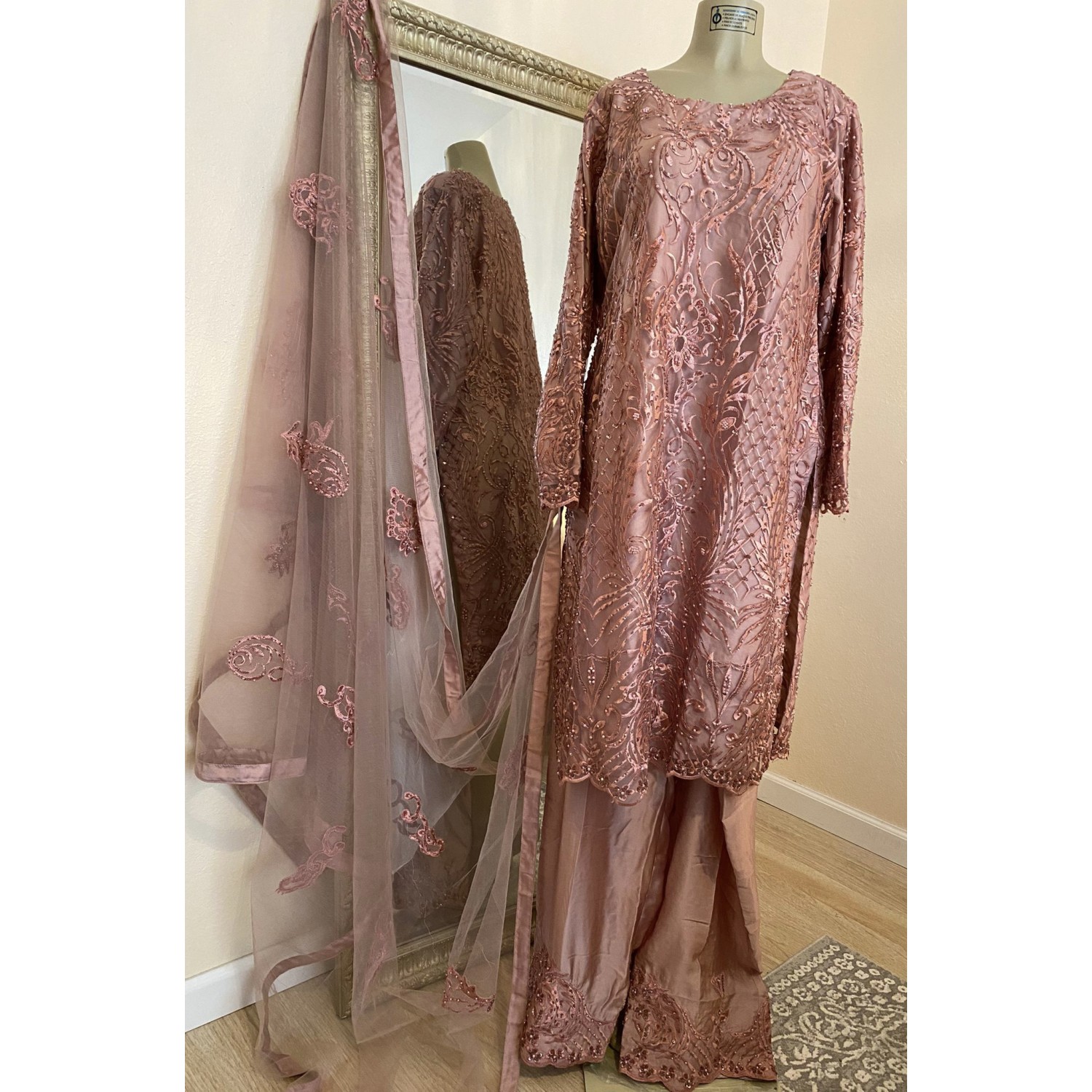 Tags: RNW Collection, 3pcs, Pink, mauve, Salwar Kameez, Size 44, (CA319A)