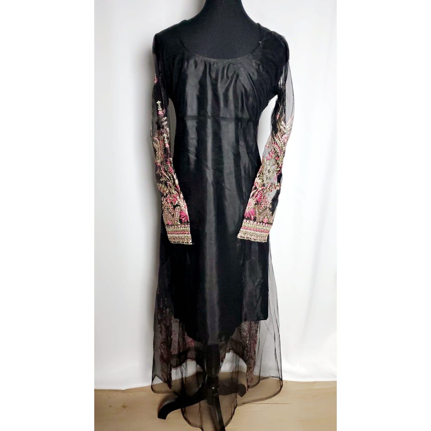 Tags: Net Gown, Embroidered, Net Dupatta, SIZE 40, BC156A, Black, Pink, Net