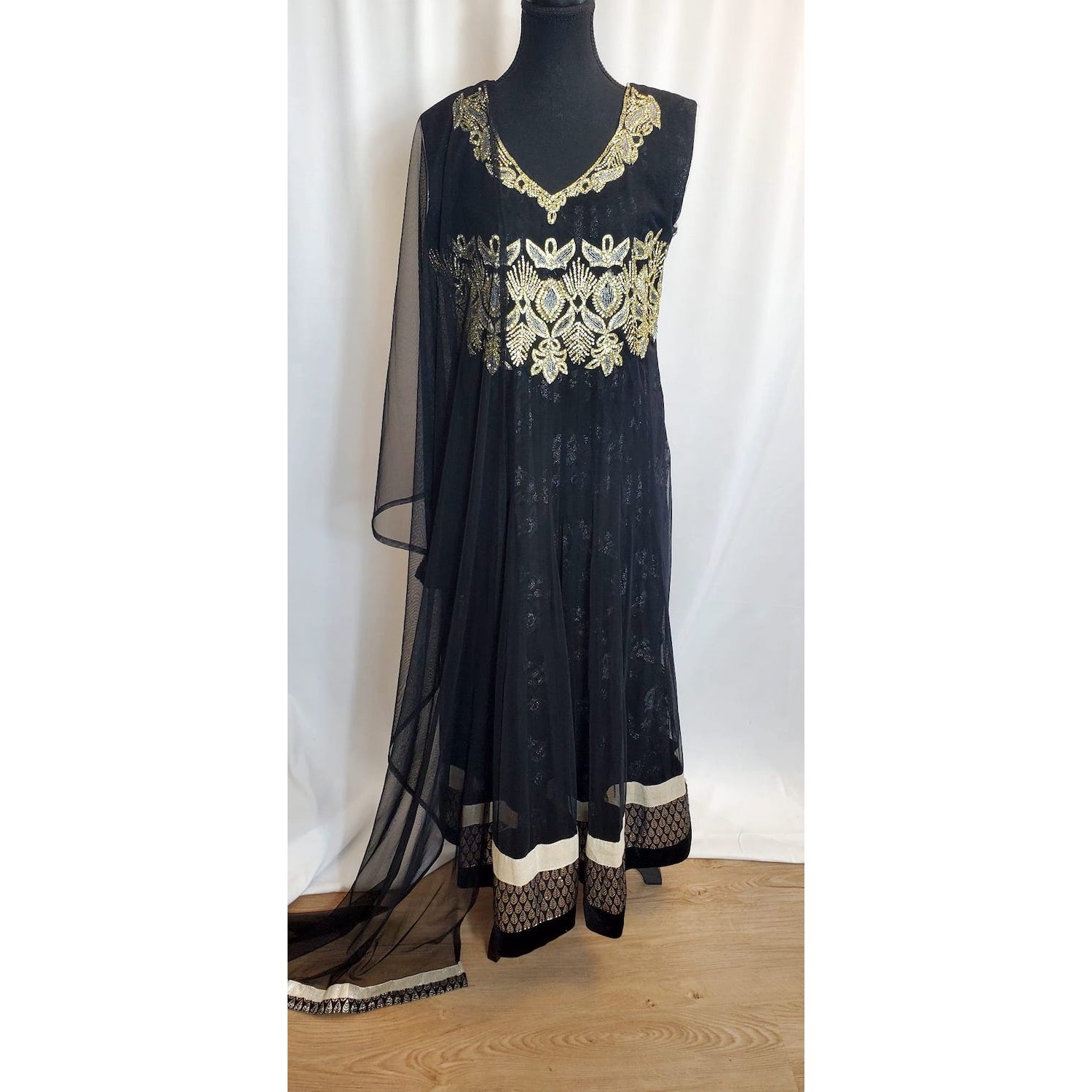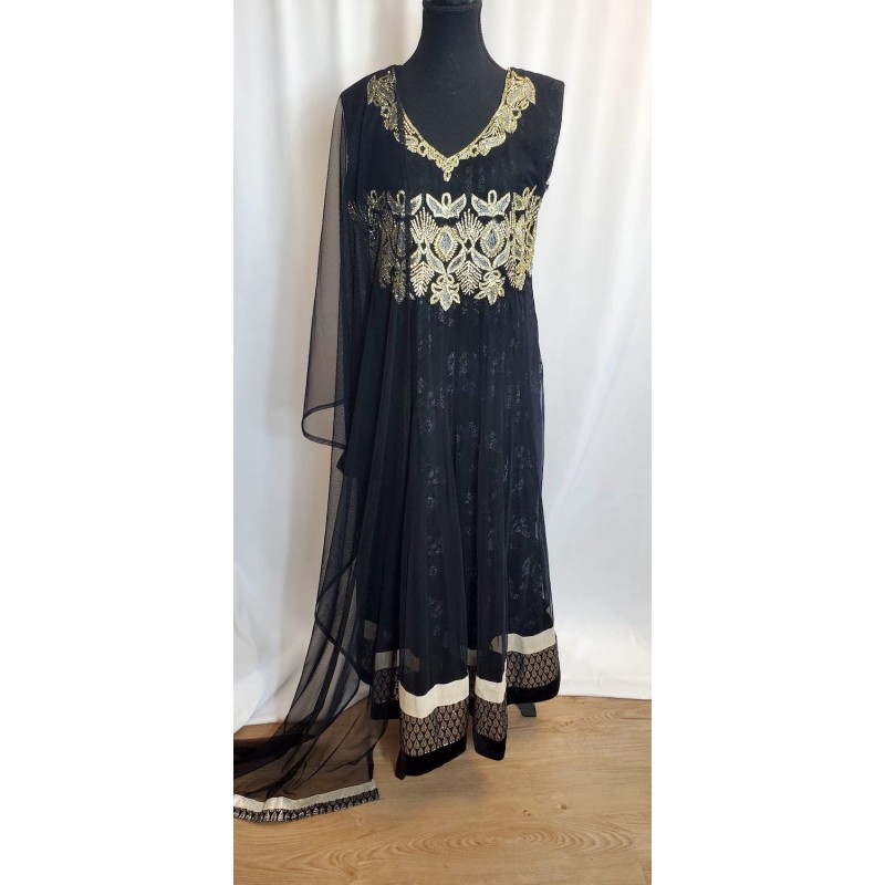 Tags: Black, Silver, Net Gown, SIZE 42, BC23A, Net, Beads, Embroidered Neckline