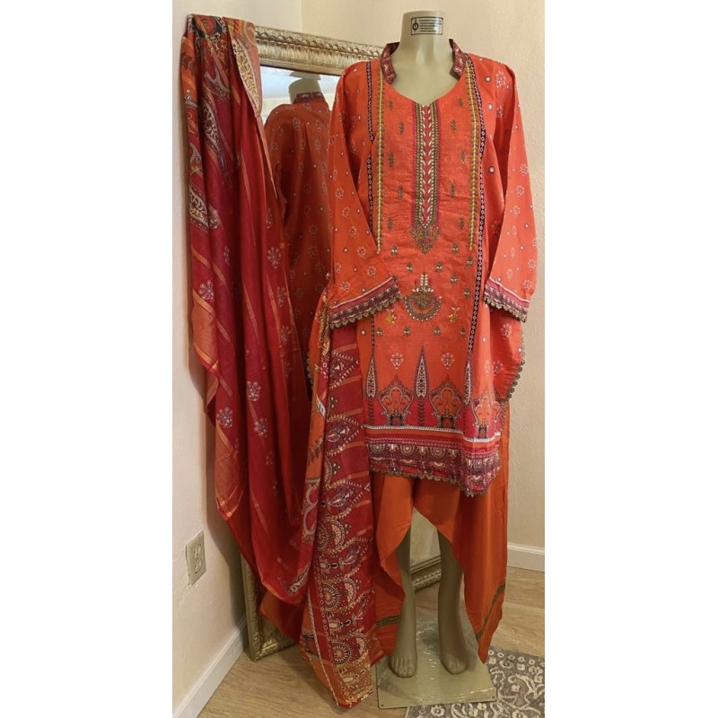 Tags: RNW Collection, Embroidered, Lawn, Orange, White, Brown, Mustard, Blue Red, Black, SIZE 52 (CA317A)
